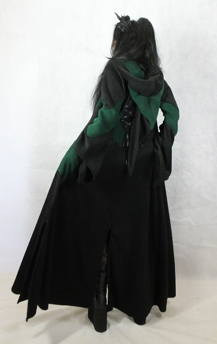 It’s a cosy, Snugly coat made from our snugglegoth fleece fabric; totally warm but sooooo elven and swishy! There are pockets, splits and a rather splendid hood made from contrasting panels :)