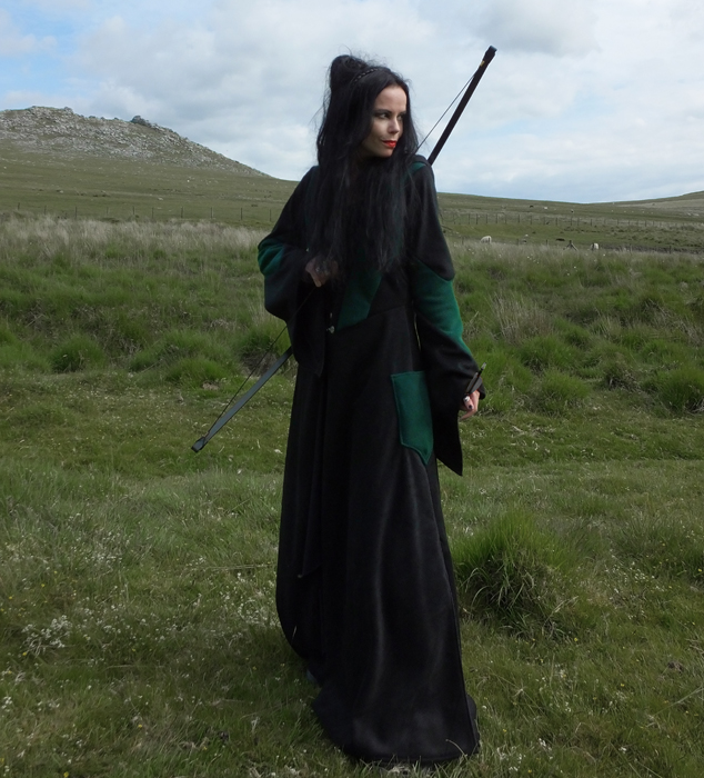 It’s a cosy, Snugly coat made from our snugglegoth fleece fabric; totally warm but sooooo elven and swishy! There are pockets, splits and a rather splendid hood made from contrasting panels :)